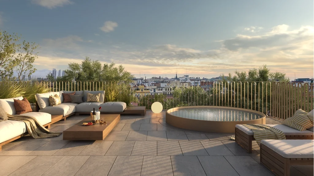 Las joyas del proyecto. Áticos de hasta 345 m² con vistas memorables esculpidas en luz, privacidad y diseño para vivir Madrid desde las alturas.