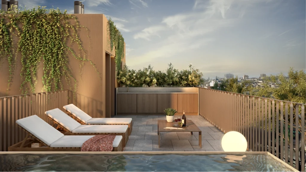 La esencia clásica del edificio original de 1940 se fusiona con la arquitectura contemporánea de los nuevos áticos, creando una conexión permanente entre historia y vanguardia.